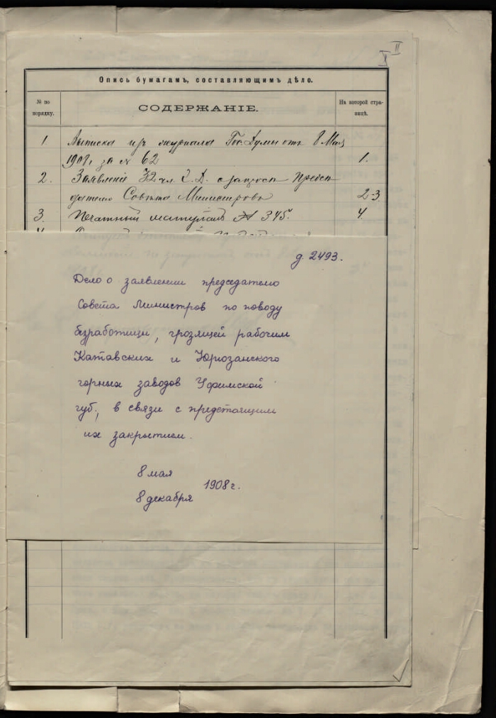 | Заголовок | Дело о заявлении членов Государственной думы Третьего созыва председателю совета министров по поводу безработицы, грозящей рабочим Катавского и Юрюзанского горных заводов Уфимской губернии в связи с предстоящим их закрытием |