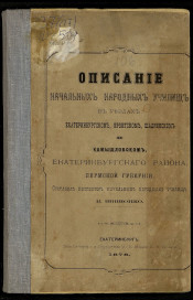 Описание начальных народных училищ в уездах Екатеринбургском, Ирбитском и Шадринском Екатеринбургского района Пермской губернии / сост. инспектор нач. нар. уч-щ В. Шишонко. - Екатеринбург : типо-лит. и переплетная А. П. Мерной и Е. К. Краевой, 1878. -[2], 191 с. ; 24 см. -