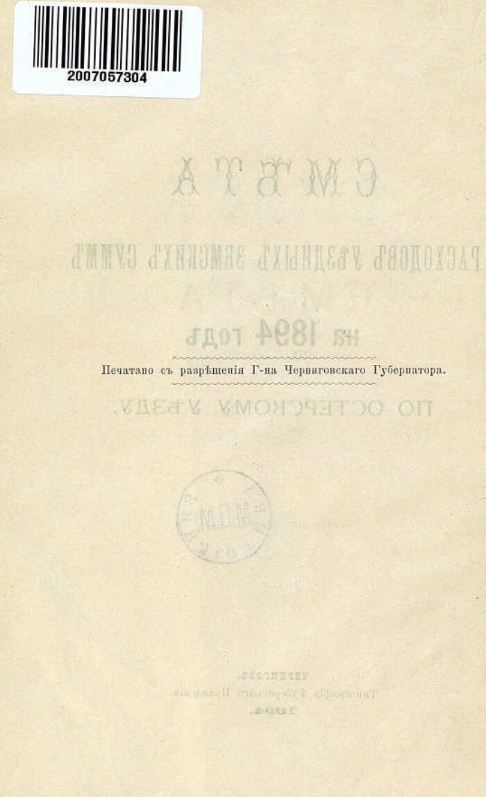 Смета расходов и доходов уездных земских сумм и общая объяснительная записка по Остерскому уезду... - Остер, 1867-1914. - 22-25. - Место изд. части смет: Чернигов, Киев, Козелец. В смете на 1868 г. общее загл. отсутствует. Загл. смет: на 1894 г.: Смета расходов уездных земских сумм по Остерскому уезду; на 1896 г.: Сметы и раскладки Остерской уездной земской управы; за ряд лет незнач. изм.