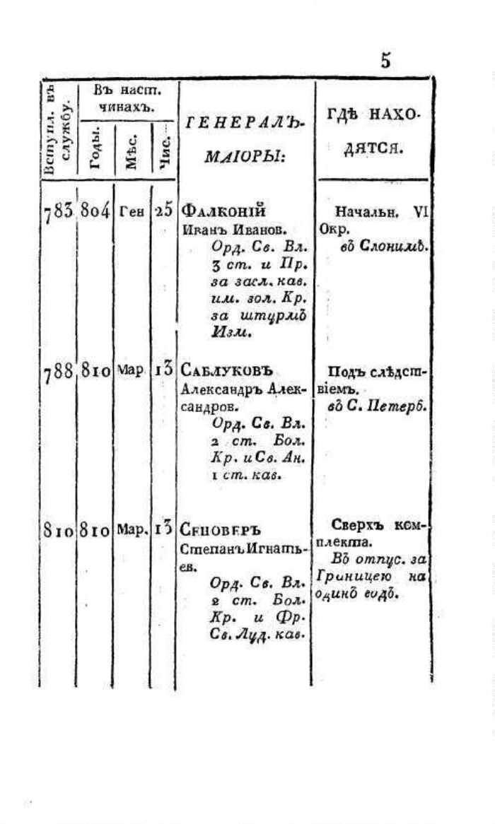 Список генералитета, штаб и обер-офицеров Корпуса инженеров путей сообщения. 14 декабря 1825. - 1825. -95, [1], 96-104, [1] с. : табл. ; 8° (18 см). - Содерж.также: Список штаб и обер-офицеров строительнаго отряда путей сообщения (с. 59 - 92); Список штаб и обер-офицеров военнорабочей бригады путей сообщения (с. 93 - 101); Список гг. офицеров пионерной роты путей сообщения (с. 102 - 104).. - Сводный каталог русской книги 1801-1825 гг.