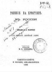 Гонение на христиан в России [в 1895 г.]. Письмо Л.Н. Толстого к редактору английской газеты. - Geneve : М.К. Элпидин, 1896. -60 с. ; 18. - Изд. также под загл.: Гонения на духоборцев. На обл. загл. также на фр. яз. Авт. 1-го произведения в кн. не указан; установлен по Свод. кат. рус. нелег. и запрещ. печати: Кн. и период. изд. 2-е доп. и перераб. изд. М., 1981. Ч. 1. С. 44.