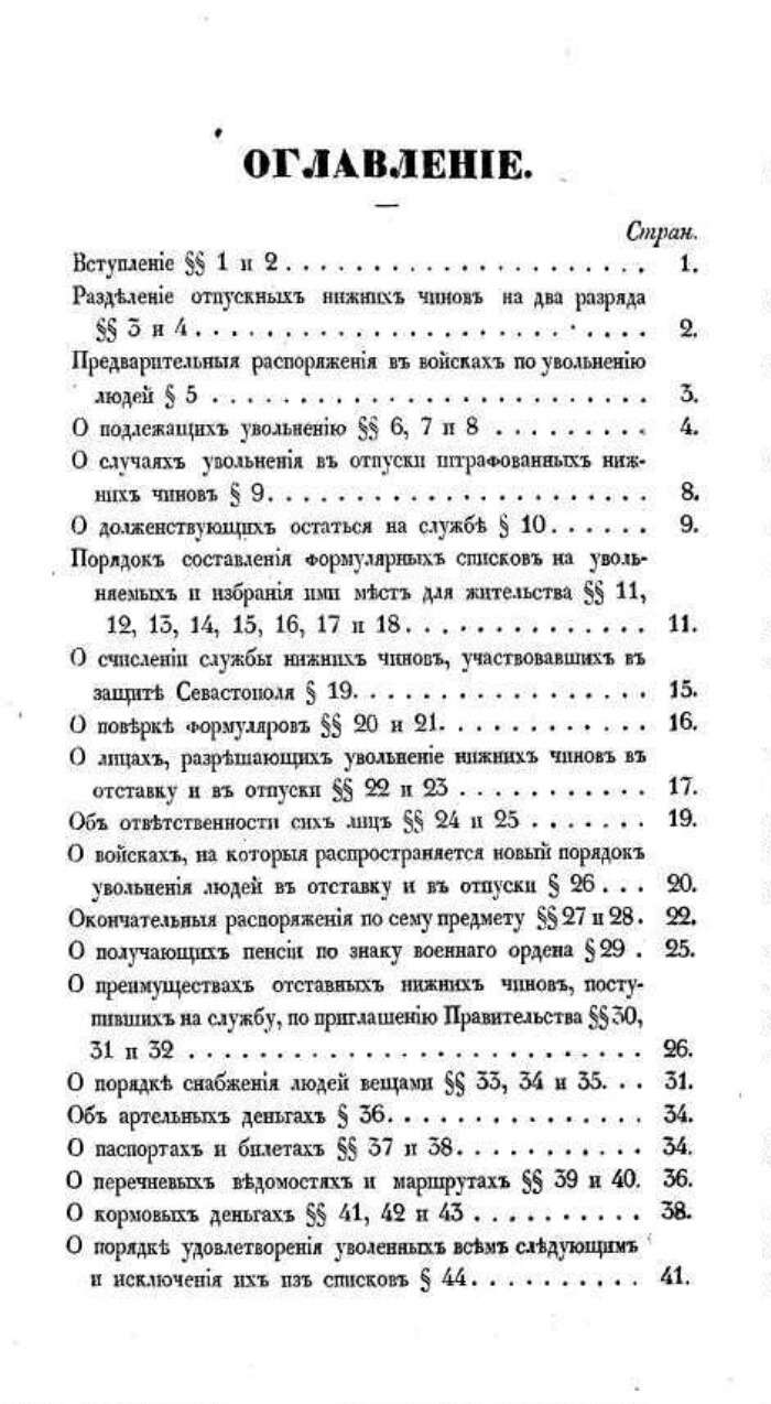 Правила для увольнения из войск нижних чинов в отпуски и в отставку. - Санкт-Петербург, 1856. -[6], 76, 183 с. ; 20. - Перед тит. л. помещен Приказ Воен. министра. С.-Петербург. Мая 30 дня 1856 г. О Правилах для увольнения из войск нижних чинов в отпуск и в отставку. - Экз. РНБ (135/106): является прил. к Приказу военного министра № 111 за 1856 г.