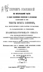 Сборник узаконений по нотариальной части со всеми позднейшими изменениями и дополнениями заключающих в себе тексты всех законов, на которые сделаны ссылки, с разъяснением по решениям Правительствующего сената : С приложениями: узаконений уставов торгового и гербового установленных законом и проектов образцов и форм уговоров и актов и правил о порядке введения в действие положения о нотариальной части в Варшавском судебном округе : Настол. кн. для г.г. мировых судей, нотариусов и всех лиц, совершающих акты : Сост. по офиц. источникам В. Выдрин, нотариус Воронеж. окр. суда. - Воронеж : тип. В.И. Исаева, 1880. -II, 360, LXXXVIII, VI с., 1 л. табл. ; 27. -