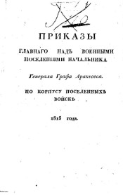 Приказы главнаго над военными поселениями начальника генерала графа Аракчеева. По корпусу поселенных войск 1818 года. - [Спб., Не ранее 1819]. -[2], 10, [2], 14, 7, [1], 10, [2], 6, 98, 12, [60] с. ; 8° (19 см). - Перепечатка приказов А.А._Аракчеева за апр. - дек. 1818 г. (№ 1 - 61).. - Сводный каталог русской книги 1801-1825 гг.