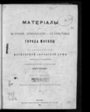 Материалы для истории, археологии и статистики города Москвы по определению Московской городской думы, собранные и изданные руководством и трудами Ивана Забелина. - Москва : Моск. гор. дума, 1884 (Моск. гор. тип.:). -