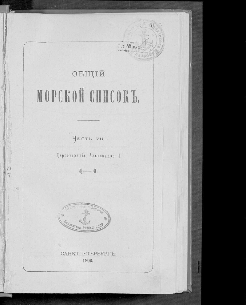 Общий морской список : Ч. 1-. - Санкт-Петербург : тип. В. Демакова, 1885-1907. - 25. - Тип. ч. 6-13: тип. Мор. м-ва.