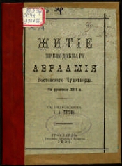 Житие преподобного Авраамия, ростовского чудотворца : По рукописи XVII в. / С предисл. А.А. Титова. - Ярославль : тип. Губ. правл., 1892. -22 с. ; 17. - Взято из неофиц. ч. "Яросл. губ. вед.".