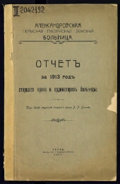 За 1913 год / Под общ. ред. ст. врача А.Н. Попова. - Электро-тип. Губ. земства, 1915. -116, [12] с. : табл.. -