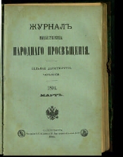 1894. Ч. 292. [№ 3]. Март : Седьмое десятилетие. - Тип. В.С. Балашева и К°, 1894. -[404] с. разд. паг. : табл.. - Прил. "Указатель статей, помещенных в неофициальной части Журнала Министерства народного просвещения за время с 1867 года по 1891 год" отсутствует. Библиогр. в подстроч. примеч.