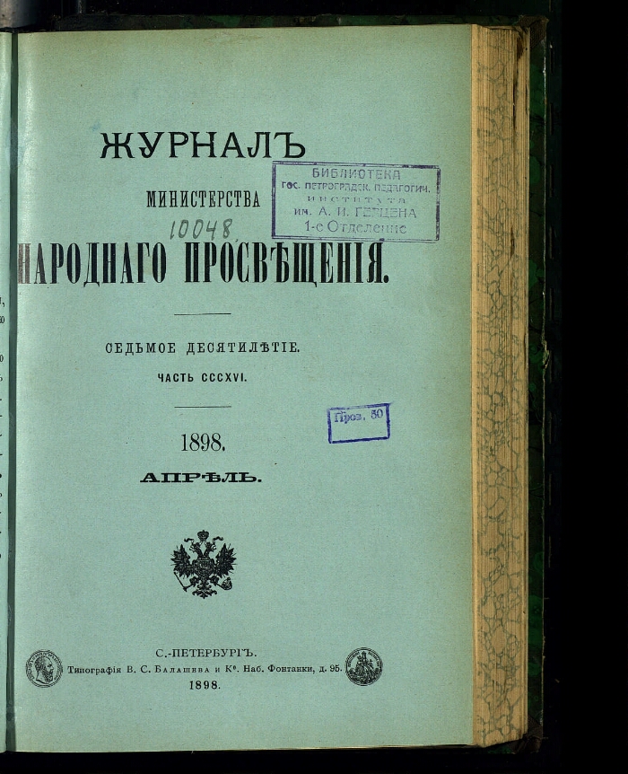 Источник электронной копии: ПБ Место хранения оригинала: РГПУ им. А. И. Герцена |