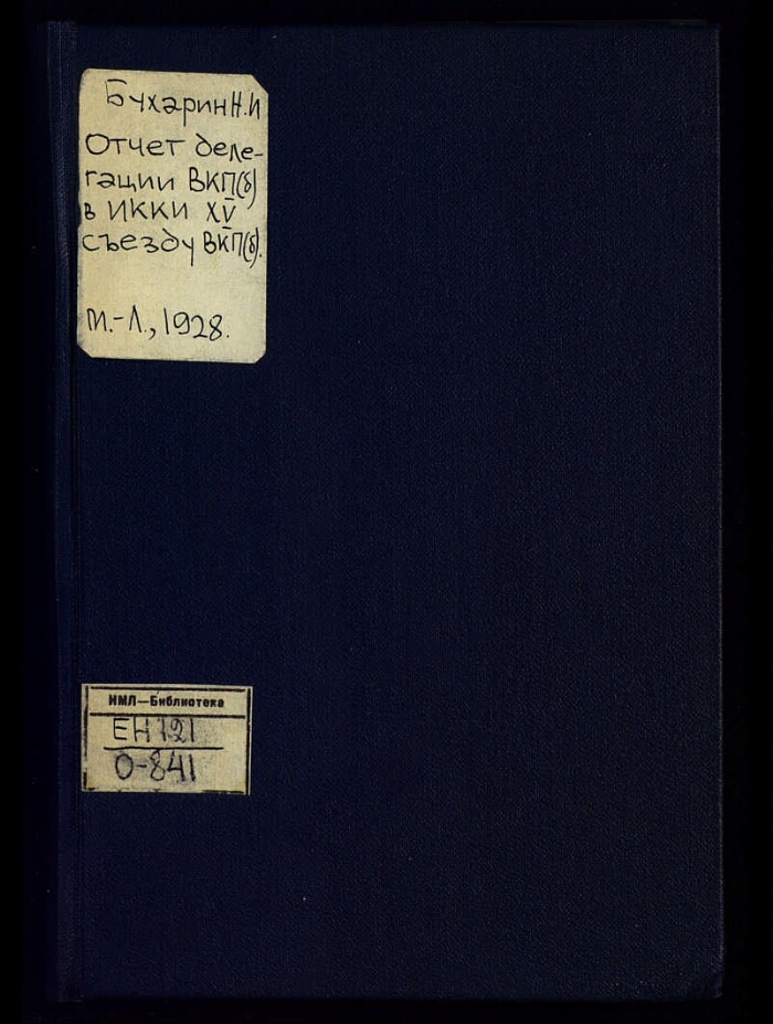Отчет делегации ВКП(б) в ИККИ XV съезду ВКП(б) : доклад и заключительное слово 9-12 декабря 1927 г. / Н. И. Бухарин. - Москва ; Ленинград : Государственное издательство, 1928. -204 с. ; 17 см. -