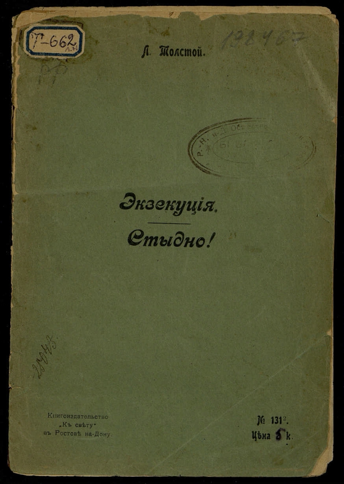 Экзекуция. Стыдно! / Л. Толстой. - Ростов-на-Дону : К свету, [1900]. -11 с.. -