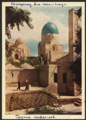 Описание Самарканд. Ансамбль Шахи-Зинда. Группа мавзолеев. ХIV – ХV вв. - ИЗОГИЗ. -открытка; 605 : Территория. . Источник электронной копии: Галерея Третьякова Издательство Изогиз