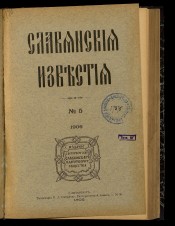 Славянские известия. - 1889, № 1/2 - 1891, № 52 ; 1904, № 1 (октябрь) - 1916, кн. 2. -Санкт-Петербург, 1889-1891, 1904-1910, 1912-1916. - Заглавия: 1883-1888, 1902-1904 Известия С.-Петербургского славянского благотворительного общества ; 1889-1891, 1904-1910, 1912-1916 Славянские известия. Подзаголовок: 1912-1915 Политическая, общественная и литературная газета ; с 1916 г. - без подзаголовка. Редакторы: М. М. Филиппов (1889), В. В. Комаров (1889-1891), В. Н. Кораблев (1904-1910, 1912-1915), с 1916 г. - П. И. Калинков. Издатель: С.-Петербургское славянское благотворительное общество. Выходил с 1883 по 1888 гг. под названием "Известия С.-Петербургского славянского благотворительного общества". В 1889-1891 гг. издавался под названием "Славянские известия". На № 52 1891 г. издание прекращено. В 1892-1894 гг. взамен него выходил журнал "Славянское обозрение". В 1902 г. издание возобновлено под прежним названием "Известия С.-Петербургского славянского благотворительного общества". С 1904 по 1916 гг. выходил под названием "Славянские известия". В 1911 г. журнал не издавался. 8 раз в год (1904/1905-1910) ; c 1912 г. - еженедельно ; с 1914 г. - 2 раза в месяц. Указатели содержания: за 1904-1910 годовые указатели (отдельные выпуски).