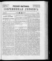 1861. № 45. Ноябрь: Русский вестник. Современная летопись. - Тип. Каткова и К°, 1861. -32 с. : табл.. - Русский вестник выходит ежемесячно; Современная летопись - еженедельно по четвергам. Библиогр. в тексте и подстроч. примеч.. - Экз.: без обл., с рукоп. помет.
