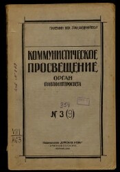 1923. № 3 (9). Май-июнь : Орган Гл. полит.-просвет. ком. республики : Год изд. 2 / Под ред. Н. Рузер-Нировой ; При ближайшем участии: Н. Алексеева, П. Артамонова (Иваново-Вознесенск), И. Бернштейна и др. - Москва : Главполитпросвет : Красная новь, 1923. -199, [9] с. : табл.. - На обл.: Орган Главполитпросвета. Выходит один раз в два месяца. Библиогр. в тексте и подстроч. примеч. . -10000 экз.