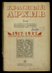 Красный архив : Ист. журн. - Москва : Центр. архив РСФСР, 1922-1941. - В надзаг.: 1922-1927 Ред. Адоратский, В.В. Максаков [и др.]; 1926 Т. 3 - 1935 Центр. архив РСФСР; 1936 - 1938 № 3 (88) Центрархив СССР и РСФСР; 1938 № 4/5 (89/90) - Гл. архивное упр. НКВД СССР. Место изд.: 1922 - 1924 Т. 6 М.; 1924 Т. 7 - 1932 М. - Л.; 1933 - М. Изд-во: 1922 Т. 1 Центр. архив РСФСР; 1922 Т. 2 - 1932 Гос. изд-во; 1932 Т. 5/6 - Соцэкгиз. Также м/ф. Содержание вышедших томов журн. "Красный архив". Т. 1-63. [1922-1934] (В журн. ... 1934 Т. 63, с. 136-146). Именной указатель к I-IV т. т. журн. "Красный архив". (В журн. ... 1924 Т. 7, с. I-XXVII).