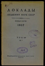 Т. 14. 1937. № 7. 1 марта : Год изд. 5 / Редкол.: акад. А.А. Борисяк, акад. С.И. Вавилов, акад. А.А. Рихтер и др. - Москва, 1937. -[2], 419-472 с. : ил., табл.. - (Новая серия). - Содерж.: Математика. Физика. Геофизика. Биофизика. Биохимия, [и др.]. - Библиогр. в тексте и подстроч. примеч. . -3000 экз.