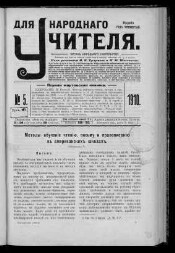 Для народного учителя : Орган нар. учительства : Г. [1]-11. - Москва : Н.В. Тулупов и П.М. Шестаков, 1907-1917. - Изд-во: 1907-1913 № 1-11 Н.В. Тулупов и П.М. Шестаков; 1913 № 12 - 1914 Н.В. Тулупов, П.М. Шестаков, Г.Р. Сабсович; 1915 № 1-6 Н.В. Тулупов; 1915 № 7 - 1917 Т-во И.Д. Сытина. Подзаг.: 1907-1915 Орган нар. учительства; 1916-1917 Пед. журн. С указ.