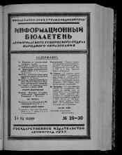 Бюллетень Ленинградского областного отдела народного образования. - Ленинград, 1923-1931. - Изд-во: 1925 - 1926 № 14 Гос. изд-во; 1926 № 15 - 48 Ленингр. Губ ОНО; 1928 Ленингр. ОблОНО; 1929 - 1930 № 22/23 "Работник просвещения"; 1930 № 24/25 - 26/27 Гос. изд-во; 1930 № 28/29 - 1931 Гос. учеб.-педагогич. изд-во. Загл.: 1923 - 1924 № 4 Информационный бюллетень Петроградского губернского отдела народного образования; 1924 № 5 - 1926 Информационный бюллетень Ленинградского губернского отдела народного образования; 1927 № 1 - 36 Бюллетень Ленинградского губернского отдела народного образования; 1927 № 1 (37) - 1931 Бюллетень Ленинградского областного отдела народного образования. До № 30 изд. вых. отд. листовками. В б-ке нет.
