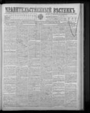 Правительственный вестник : ежедневная газета / Главное управление по делам печати. - Учреждена 27 октября (8 ноября) 1868 года. -1 (13 января) 1869 - 26 февраля (11 марта) 1917. -Санкт-Петербург, 1869 - 1917. - Выходила в Петербурге с 1 (13) января 1869 по 26 февраля (11 марта) 1917, ежедневно, кроме понедельников и иных послепраздничных дней; заменила газету "Северная почта". Публиковались правительственные распоряжения, отчеты о заседаниях Государственного совета и совета министров, Внутренние известия, Административные известия, телеграммы из-за границы, сведения о деятельности земских, городских благотворительных учреждений и ученых обществ, списки избирателей, таблицы тиражей, биржевой указатель, метеосводки и т. п. Заглавия: с 5 марта по 24 октября (6 ноября) 1917 года выходила под названием "Вестник Временного правительства" ; с 28 октября 1917 года - "Газета Временного Рабочего и Крестьянского правительства" ; с 20 января (2 февраля) 1918 года до 10 марта 1918 года - "Газета Рабочего и Крестьянского Правительства". Редакторы: Григорьев В. В. (с 1 января 1869 по 13 ноября 1870), Капнист П. И. (с 17 ноября 1870), Сушков С. П. (с 2 апреля 1874), Данилевский, Григорий Петрович (22 августа 1882-1890), Татаринов И. А. (и. о. с 8 декабря 1890), Татищев С. С., Истомин, Владимир Константинович (с 27 января 1891), Случевский, Константин Константинович (с 6 апреля 1891), Кулаковский, Платон Андреевич (с 1902 по 1905), Башмаков, Александр Александрович (с 1906 по 1913), Войцехович, Митрофан Викентьевич (с 1910 по 1911, 1914), князь Урусов С. П. (с 1913 по 1916), Кубасов И. А. (с 1914). Приложения: Сельский вестник (1881-1905), Русское государство (1906), Вечернее прибавление к "Правительственному вестнику" (1906-1907), Последние известия (1914-1917).