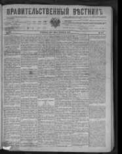 Правительственный вестник : ежедневная газета / Главное управление по делам печати. - Учреждена 27 октября (8 ноября) 1868 года. -1 (13 января) 1869 - 26 февраля (11 марта) 1917. -Санкт-Петербург, 1869 - 1917. - Выходила в Петербурге с 1 (13) января 1869 по 26 февраля (11 марта) 1917, ежедневно, кроме понедельников и иных послепраздничных дней; заменила газету "Северная почта". Публиковались правительственные распоряжения, отчеты о заседаниях Государственного совета и совета министров, Внутренние известия, Административные известия, телеграммы из-за границы, сведения о деятельности земских, городских благотворительных учреждений и ученых обществ, списки избирателей, таблицы тиражей, биржевой указатель, метеосводки и т. п. Заглавия: с 5 марта по 24 октября (6 ноября) 1917 года выходила под названием "Вестник Временного правительства" ; с 28 октября 1917 года - "Газета Временного Рабочего и Крестьянского правительства" ; с 20 января (2 февраля) 1918 года до 10 марта 1918 года - "Газета Рабочего и Крестьянского Правительства". Редакторы: Григорьев В. В. (с 1 января 1869 по 13 ноября 1870), Капнист П. И. (с 17 ноября 1870), Сушков С. П. (с 2 апреля 1874), Данилевский, Григорий Петрович (22 августа 1882-1890), Татаринов И. А. (и. о. с 8 декабря 1890), Татищев С. С., Истомин, Владимир Константинович (с 27 января 1891), Случевский, Константин Константинович (с 6 апреля 1891), Кулаковский, Платон Андреевич (с 1902 по 1905), Башмаков, Александр Александрович (с 1906 по 1913), Войцехович, Митрофан Викентьевич (с 1910 по 1911, 1914), князь Урусов С. П. (с 1913 по 1916), Кубасов И. А. (с 1914). Приложения: Сельский вестник (1881-1905), Русское государство (1906), Вечернее прибавление к "Правительственному вестнику" (1906-1907), Последние известия (1914-1917).