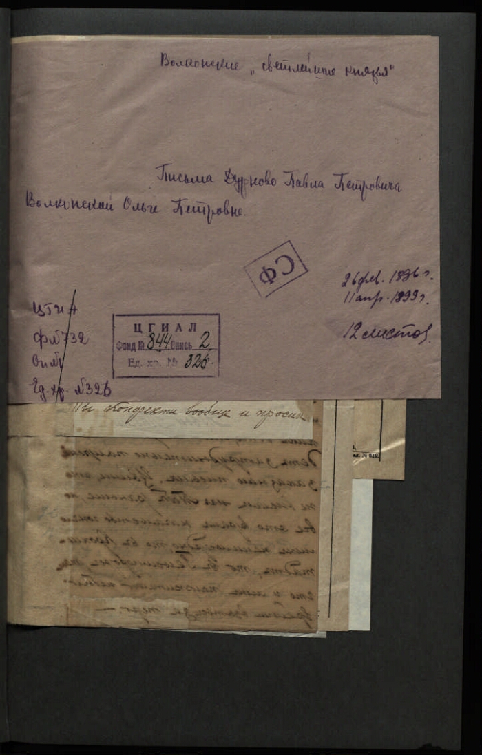 | Примечания | Рукописный текст. Чернила Оригинальный заголовок дела: Письма Дурново Павла Петровича Волконской Ольге Петровне |