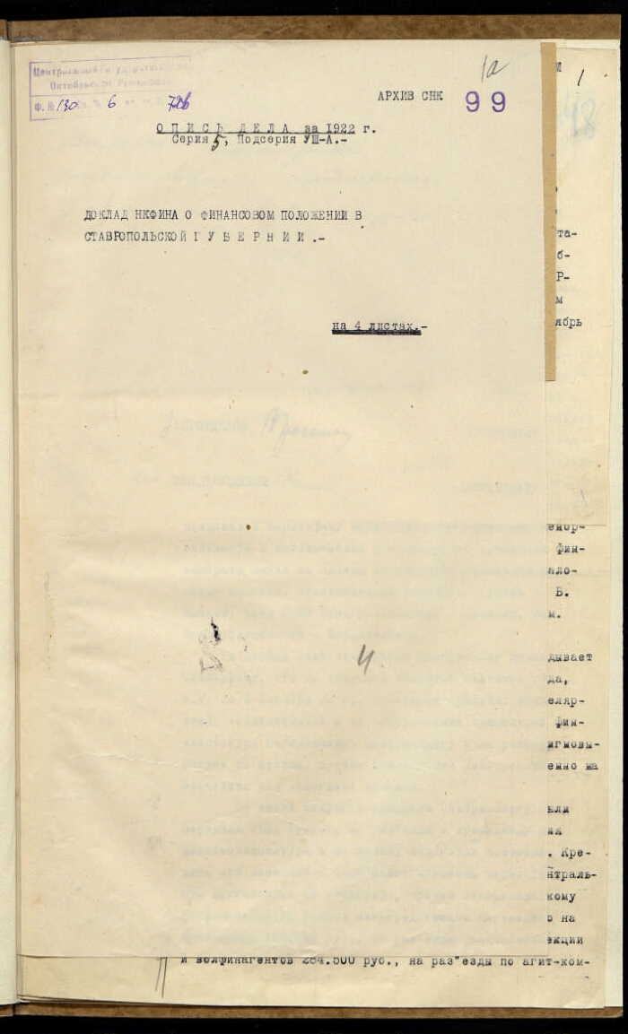 | Заголовок | Доклад Наркомфина о финансовом положении в Ставропольской губернии |
