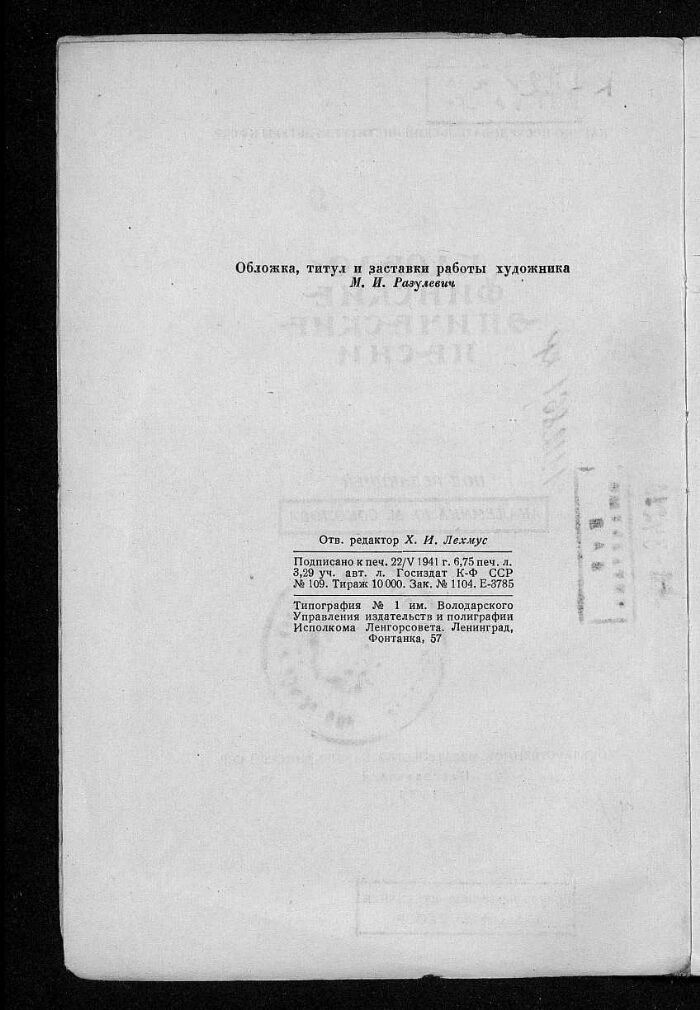 Карело-финские эпические песни / Научно-исследовательский институт культуры КФССР ; под редакцией академика Ю. М. Соколова. - Петрозаводск : Государственное издательство Карело-Финской ССР, 1941. -107, [1] с. ; 20 см. -10000 экз.