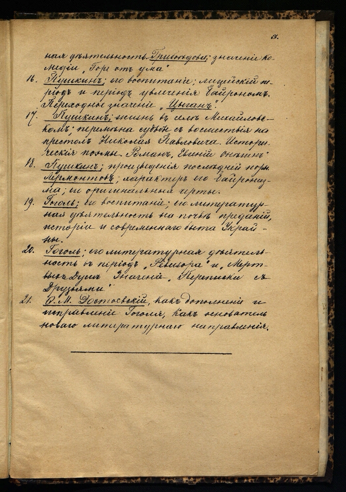Программа истории русской литературы с Петра Великого : печатано с разрешения проф. Миллера. - Санкт-Петербург : литография Пазовского, 1881. -3 с.. - Рукописный текст. - Экземпляр без обложки.