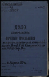 Заголовок | Дело о причислении из отставных надворного советника Сперанского к Министерству народного просвещения |