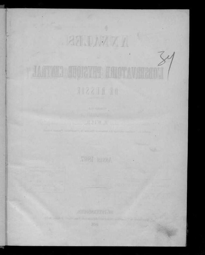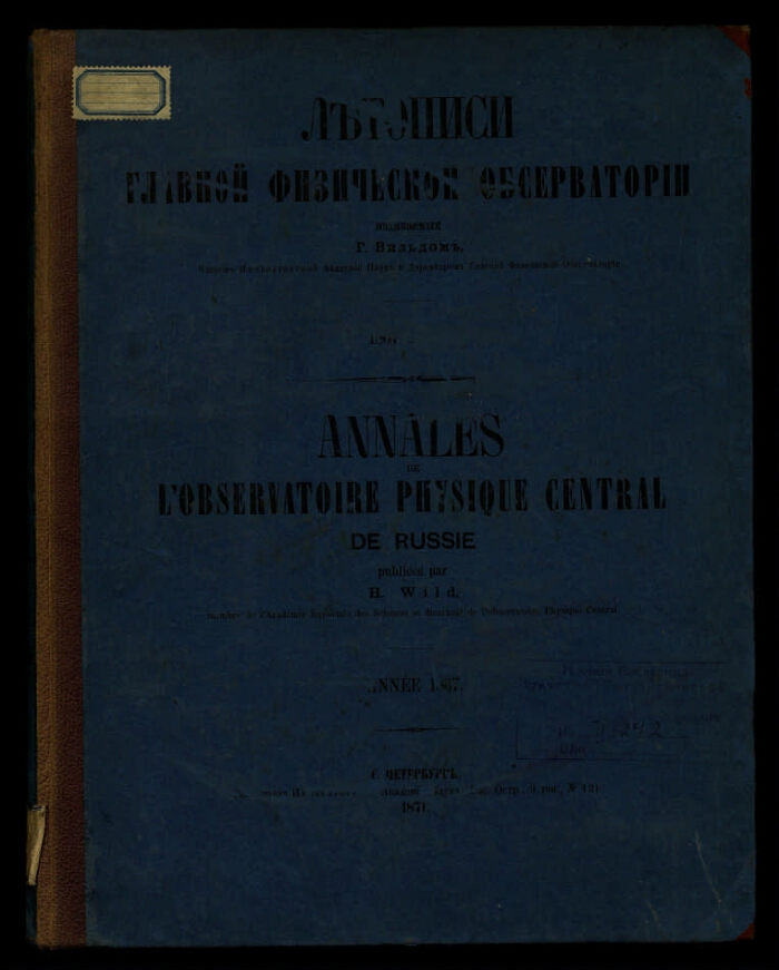 1867 г. / Изд. Г. Вильдом, чл. Имп. Акад. наук и дир. Гл. физ. обсерватории. - Санкт-Петербург : Тип. Имп. Акад. наук, 1871. -XI, 359 с. : табл.. - Часть текста на фр. яз. Парал. тит. л. на фр. яз. Обл. парал. на фр. яз.
