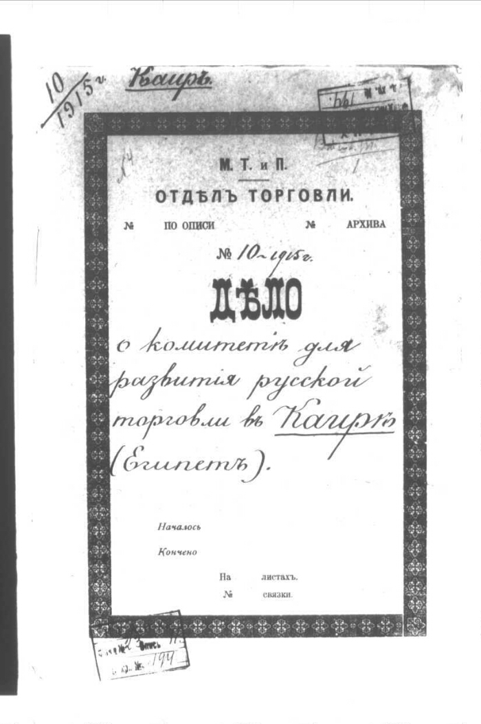 | Примечания | Рукописный текст. Чернила Оригинальный заголовок дела: О комитете для развития русской торговли в Каире (Египет) |