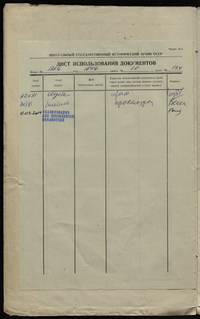 | Шифр хранения | РГИА. 1286 / 10 / 134 |