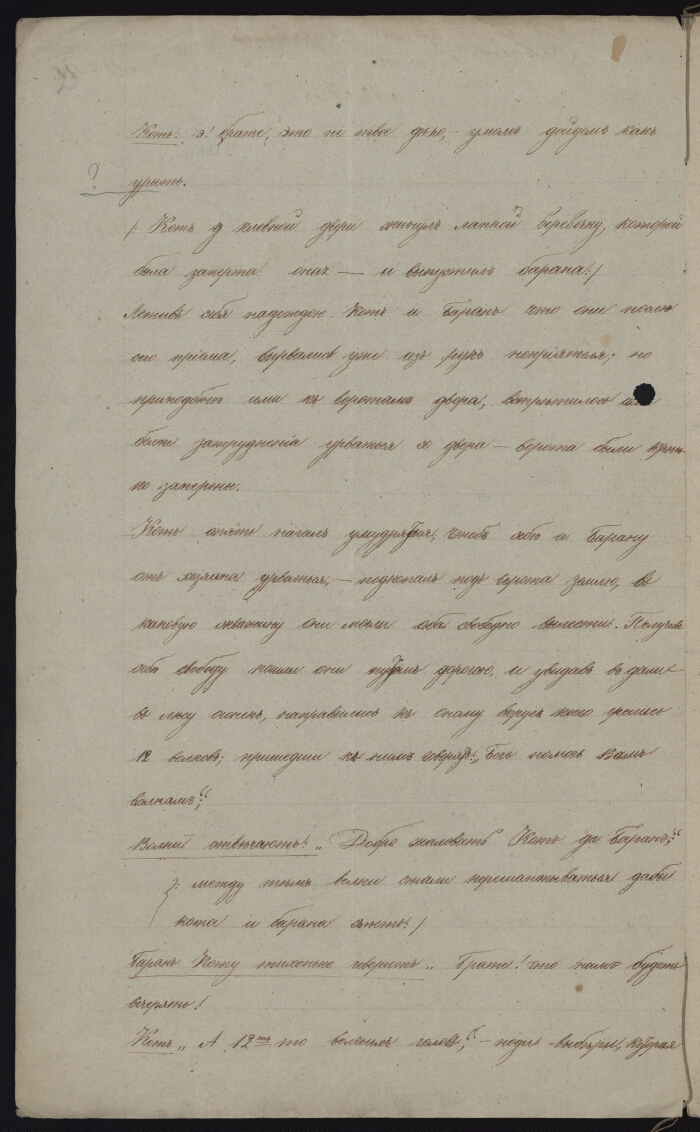 | Примечания | Рукописный текст. Чернила Место хранения оригинала: Научный архив Русского географического общества Заголовок дела также: Стеченко. Сказки, побасенка, песня, обычай на свадьбах, приметы, загадки, суеверия, образцы наречия (Гороховецкий уезд Владимирской губернии) |