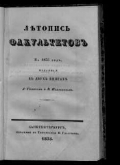 Летопись факультетов на 1835 год, изданная в двух книгах А. Галичем и В. Плаксиным. - Санкт-Петербург : Тип. И. Глазунова, 1835. -