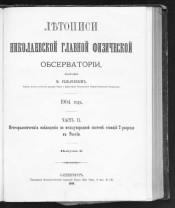 1904. Ч. 2: Метеорологические наблюдения по международной системе станций 2 разряда в России / Изд. М. Рыкачевым, чл. Имп. Акад. наук и дир. Николаевской Гл. физ. обсерватории. Вып. 2. - Санкт-Петербург : Тип. Имп. Акад. наук, 1906. -[6], 2, 444 с. : табл.. - Часть текста на фр. яз. Экз.: без обл.