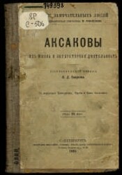 Аксаковы, их жизнь и литературная деятельность : Биографические очерки В.Д. Смирнова : С тремя портретами, гравированными в Париже и Петербурге. - Санкт-Петербург : Тип. высочайше утв. т-ва "Общественная польза", 1895. -87, [1] с., 1 л. портр. : ил.. - (Жизнь замечательных людей : Биографическая библиотека Ф. Павленкова). - На обл.: Биографический очерк В.Д. Смирнова. На обл.: С портретами Константина, Сергея и Ивана Аксаковых. Библиогр. в тексте и подстроч. примеч.. - Экз.: с рукоп. помет.