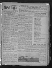 Правда : орган Центрального Комитета Коммунистической партии Советского Союза. - 1912, 5 мая (22 апреля) - 1991, 22 августа. -Москва, 1917, 9 ноября (26 октября) - 1991, 22 августа. - Заглавие: 1912, № 1 (5 мая (22 апр.)) - 1913, № 152 (356) (18(5) июля) Правда ; 1913, № 1 (26(13) июля) - 17 (14(1) авг.) Рабочая правда ; 1913, № 1 (14(1) авг.) - 31 (20(7) сент.) Северная правда ; 1913, № 1 (24(11) сент.) - 20 (22(9) окт.) Правда труда ; 1913, № 1 (14(1) окт.) - 52 (18(5) дек.) За правду ; 1913, № 1 (20(7) дек.) - 1914, № 16 (34) (4 февр. (21 янв.)) Пролетарская правда ; 1914, № 1 (5 февр. (22 янв.)) - 92 (6 июня (21 мая)) Путь правды ; 1914, № 1 (5 мая (22 апр.)) - 9 (20(7) июля) Рабочий ; 1914, № 1 (4 июня (23 мая)) - 35 (21(8) июля) Трудовая правда ; 1917, № 1 (5(18) марта) - 99 (18(5) июля) Правда ; 1917, ненум вып. (19(6) июля) Листок "Правды" ; 1917, № 1 (23 июля) - 16 (10 авг.) Рабочий и солдат ; 1917, № 1 (26(13) авг.) - 9 (5 сент. (23 авг.)) Пролетарий ; 1917, № 1 (7 сент. (25 авг.)) - 12 (15(2) сент.) Рабочий ; 1917, № 1 (16(3) сент.) - 46 (8 нояб. (26 окт.)) Рабочий путь ; 1917, № 170 (101) (9 нояб. (27 окт.)) - 174 (105) (13 нояб. (31 окт.)) Правда (Рабочий путь); 1917, (9 нояб. (27 окт.)) - Правда. Подзаг.: 1913 -1914 рабочая газета, орган ЦК и Петербургского комитета РСДРП(б) ; 1917 орган ЦК и Петроградского комитета РСДРП(б), орган ЦК РСДРП(б) ; 1918-1991 орган РКП(б), Центрального комитета и МК ВКП(б), КПСС. Гл. ред.: Молотов В. М., Сталин И. В., Бухарин Н. И., Ольминский М. С., Мехлис Л. З., Суслов М. А., Шепилов Д. Т., Зимянин М. В., Афанасьев В. Г. и др. Место издания: 1912, 5 мая (22 апр.) - 1914, 9 (22) июля Санкт-Петербург ; 1917, 5 (18) марта - 1918, 15 (2) марта Петроград ; 1918, 16 (3) марта - 1991, 22 августа Москва. Перерыв в издании: 1914, 9 (22) июля - 1917, 4 (17) марта. Выходит ежедневно. - Выходит с 5 мая (22 апр.) 1912 г.