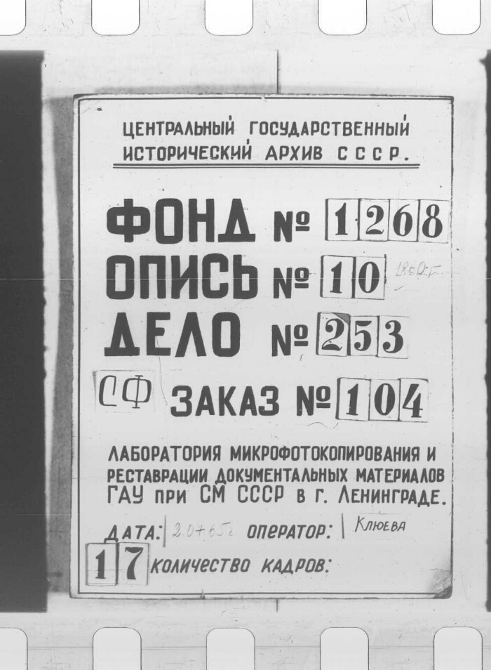 | Шифр хранения | РГИА. 1268 / 10 / 253 |