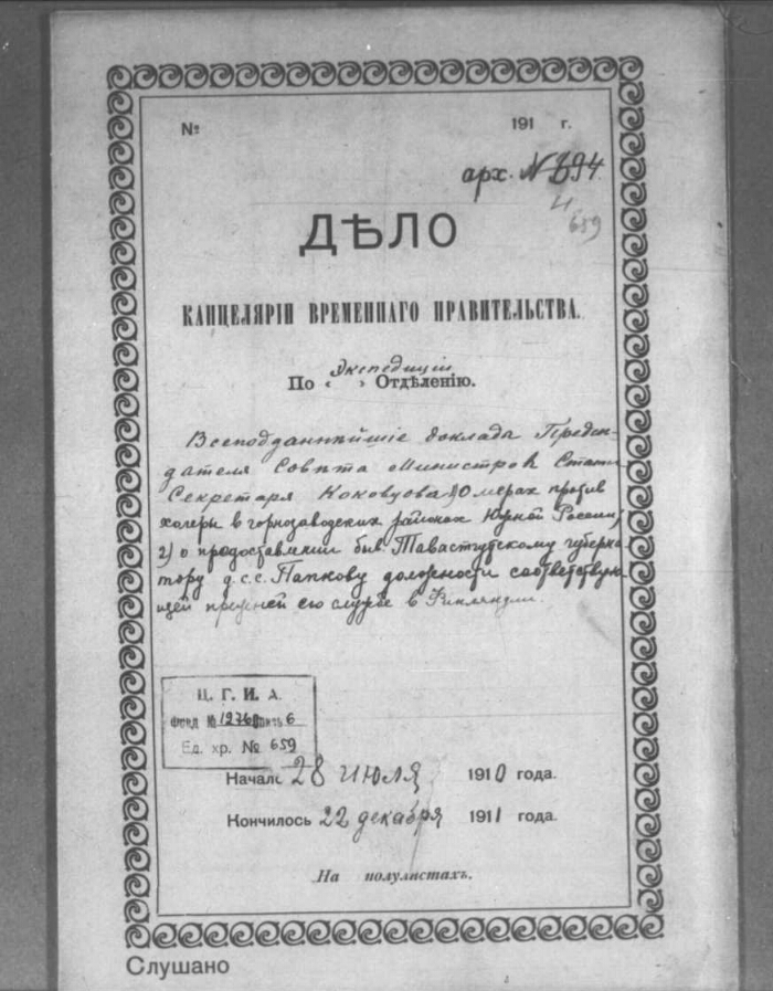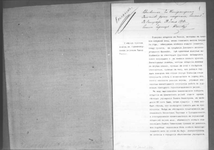 | Заголовок | Доклады председателя Совета министров В. Н. Короковцева Николаю II о мерах борьбы с холерой в горнозаводских районах Южной России |