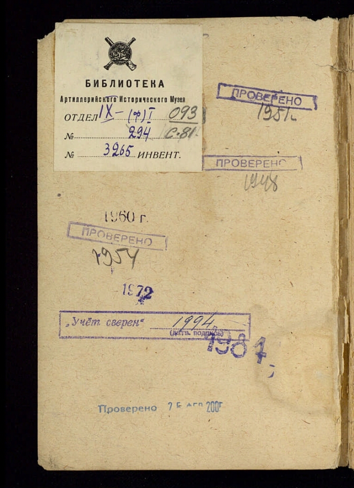 Место хранения оригинала: Военно-исторический Музей артиллерии, инженерных войск и войск связи МО РФ