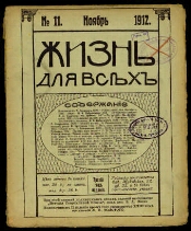 Жизнь для всех : литературный, художественный, научно-популярный и общественный ежемесячный журнал / под общей редакцией В. А. Поссе. - Санкт-Петербург, 1909-1918. - Издательство: 1909-1917 №1-6 В. А. Поссе ; 1917 №10/12 - 1918 Правление Всероссийского кооператива просветительной самопомощи "Жизнь для всех". Место издания: 1909-1914 № 7 Санкт-Петербург ; 1914 № 11 - 1918 Петроград. "Жизнь для всех" - ежемесячный литературный, художественный, научный и общественно-политический журнал толстовско-народнического направления. Издавался в Петербурге (Петрограде) с 1909 по 1918 г. Выходил в двух изданиях. Второе - с приложениями. В журнале печатались статьи по вопросам текущей политики, на социальные, этические темы. Публиковались письма, статьи, беллетристические произведения Л. Толстого, статьи о нем. Журнал имел постоянные отделы: Рабочий мир, Рабочее движение, Общественная жизнь. С 1913 введен отдел "Беседы о самообразовании", которым руководил известный библиограф Н. А. Рубакин