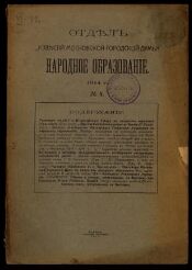 1914. № 4. - Гор. тип., 1914. -76 с. : табл.. - Содерж.: Резолюции секций I-го Всероссийского съезда по вопросам народного образования: (Окончание). Детская библиотека и школа в Англии / Р. Ландсберг. Хроника деятельности Московского городского управления по народному образованию. К вопросу о методах экспериментального исследования умственных способностей детей. Народное образование в г. Красноярске, [и др.]. - Библиогр. в подстроч. примеч. и в тексте.