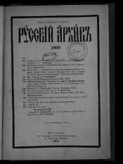 Русский архив : Ист.-лит. сб. : Изд. при Чертков. б-ке. - Москва, 1863-1917, 1990-. - Прекр. на 1917 № 2/3. Возобновл. с 1990. Изд-во: 1864 П. Бартенев и Н. Киселев; 1865-1897, 1900-1912 П. Бартенев; 1898-1899 П. и Ю. Бартеневы; 1913-1917 П. Бартенев (мл.); Вып. 1 (1990) Столица; Вып. 2 (603) (1992) МГП "Рус. архив". Подзаг.: 1863 Ист.-лит. сб. Изд. при Чертков. б-ке; 1864 Ист.-лит. сб., посвящ. преимущественно изуч. России в XVIII-XIX столетиях. Изд. при Чертков. б-ке; 1865-1866 Ист.-лит. сб., изд. ежемес. вып. при Чертков. б-ке и посвящ. преимущественно изуч. России в XVII и XIX столетиях; 1867-1872 Изд. при Чертков. б-ке; 1990 Рус. ист. журн.