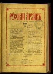 Русский архив : Ист.-лит. сб. : Изд. при Чертков. б-ке. - Москва, 1863-1917, 1990-. - Прекр. на 1917 № 2/3. Возобновл. с 1990. Изд-во: 1864 П. Бартенев и Н. Киселев; 1865-1897, 1900-1912 П. Бартенев; 1898-1899 П. и Ю. Бартеневы; 1913-1917 П. Бартенев (мл.); Вып. 1 (1990) Столица; Вып. 2 (603) (1992) МГП "Рус. архив". Подзаг.: 1863 Ист.-лит. сб. Изд. при Чертков. б-ке; 1864 Ист.-лит. сб., посвящ. преимущественно изуч. России в XVIII-XIX столетиях. Изд. при Чертков. б-ке; 1865-1866 Ист.-лит. сб., изд. ежемес. вып. при Чертков. б-ке и посвящ. преимущественно изуч. России в XVII и XIX столетиях; 1867-1872 Изд. при Чертков. б-ке; 1990 Рус. ист. журн.