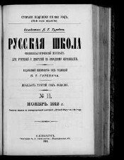 Русская школа : Общепедагогический журнал для школы и семьи. - Санкт-Петербург, 1890-1917. - Изд-во: 1890-1906 № 1 Я.Г. Гуревич; 1906 № 2 - 1917 Я.Я. Гуревич. Подзаг.: 1890-1906 Общепедагогический журнал для школы и семьи; 1907-1917 Общепедагогический журнал для учителей и деятелей по народному образованию.