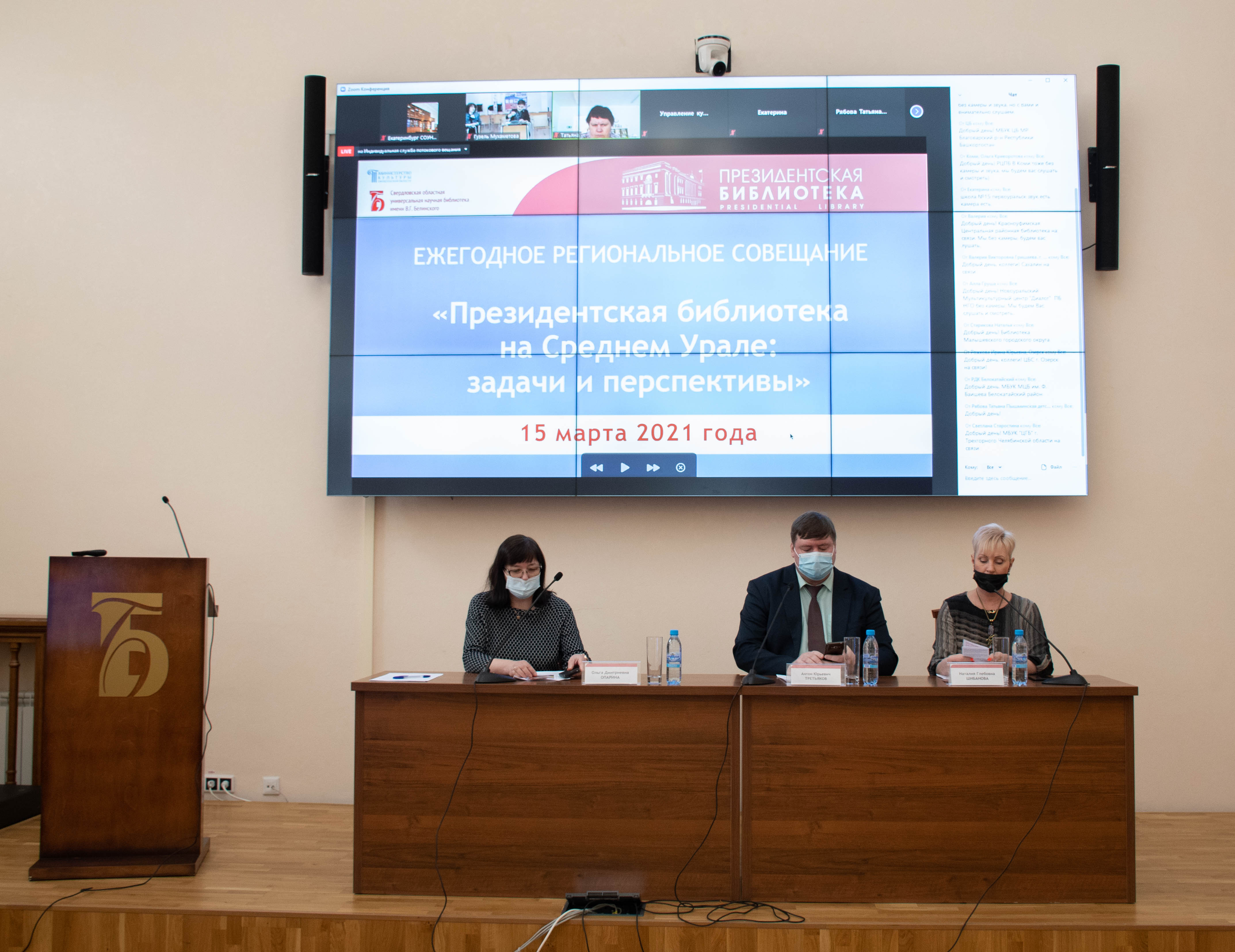 15 марта 2021 года на площадке Свердловского регионального центра Президентской библиотеки, функционирующего на базе Свердловской областной универсальной научной библиотеки им. В. Г. Белинского, в очно-заочном формате состоялось ежегодное региональное совещание «Президентская библиотека на Среднем Урале: задачи и перспективы».