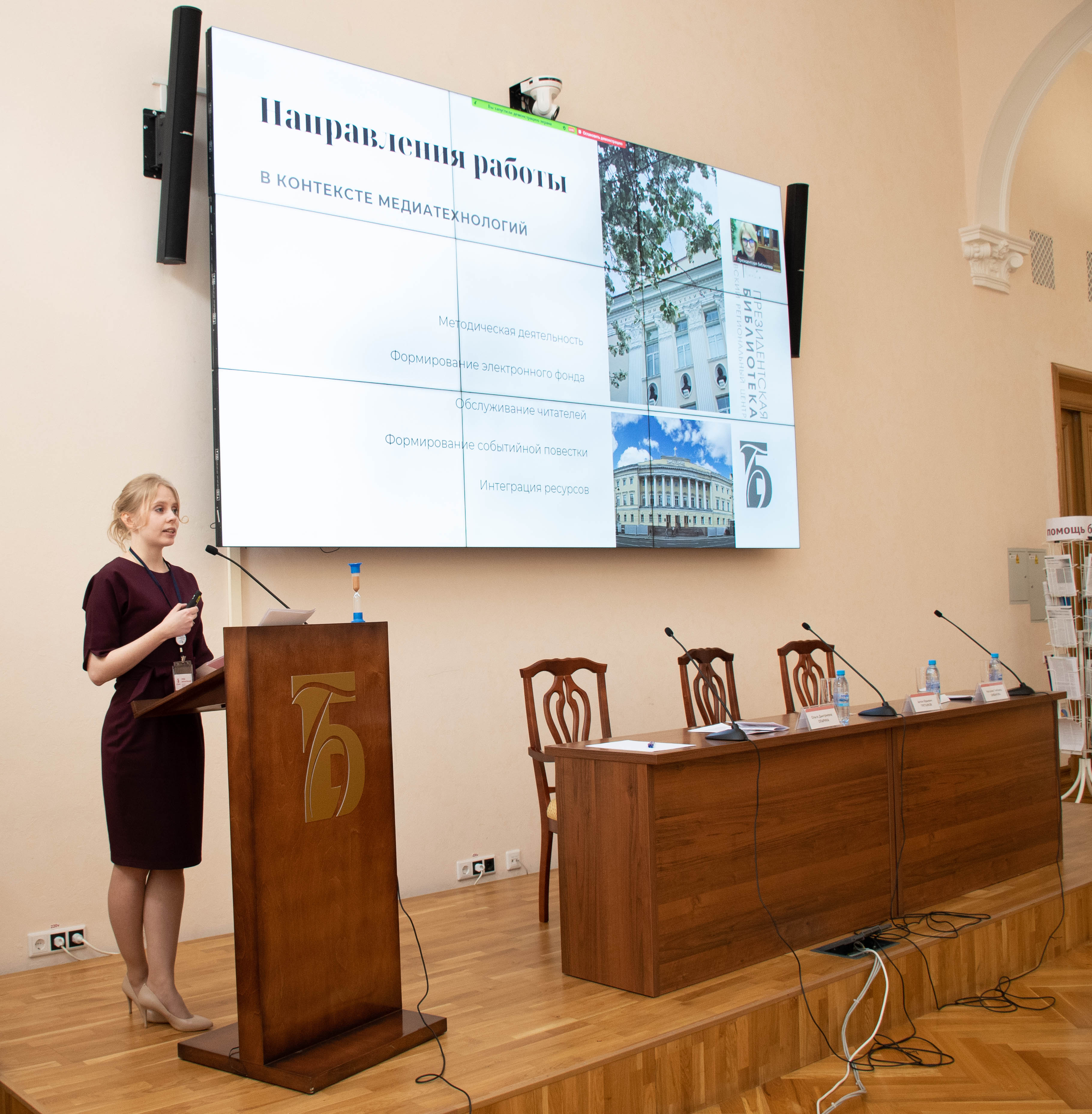 В образовательной части программы прозвучал доклад начальника отдела обслуживания пользователей Президентской библиотеки (г. Санкт-Петербург) Людмилы Савельевой «Взаимодействие Президентской библиотеки с региональными партнёрами в свете Стратегии развития библиотечного дела в Российской Федерации на период до 2030 года: ресурсы, форматы, возможности». Руководитель Свердловского регионального центра Анастасия Русина представила публичный отчёт о работе подразделения в 2020 году.
