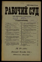 Рабочий суд : Орган Ленингр. обл. суда, Прокуратуры и Бюро пропаганды права. - Ленинград : Гоcюриздат, 1923-1930. - В 1928-1930 гг. на с. журн. печатаются: Бюллетень Ленинградского областного суда. 1928; Спутник народного заседателя. 1928-1929; Спутник пропагандиста совправа. 1930. Изд-во: 1927 № 9 - 1929 Рабочий суд; 1930 Госюриздат. Подзаг.: 1923 Издание Петрогр. губ. суда; 1924 - 1927 № 6, 12-19 Орган Ленингр. губ. суда (1924 - 1927 № 5 Издание...); 1927 № 20 - 1929 Орган Ленингр. обл. суда; 1930 Орган Ленингр. обл. суда, Прокуратуры и Бюро пропаганды права.